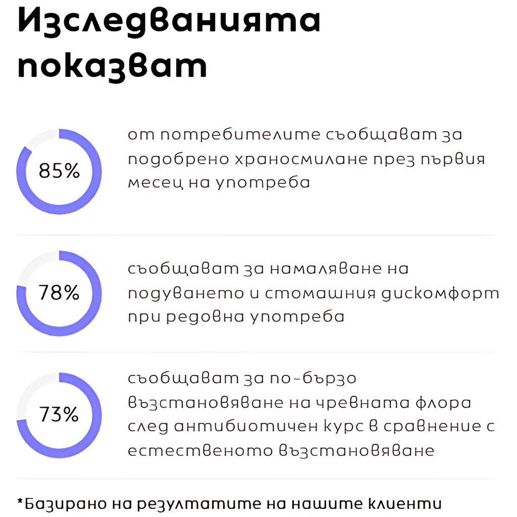 от потребителите съобщават за подобрено храносмилане през първия месец на употреба